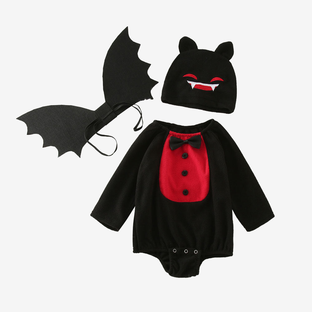 Avec son plastron rouge, son petit nœud papillon et son bonnet orné de crocs malicieux, ce costume transforme votre bébé en mini comte Dracula version adorable. Résultat : il attire tous les regards et déclenche des sourires attendris à chaque apparition. Halloween ou fête déguisée, il sera le roi de la soirée.