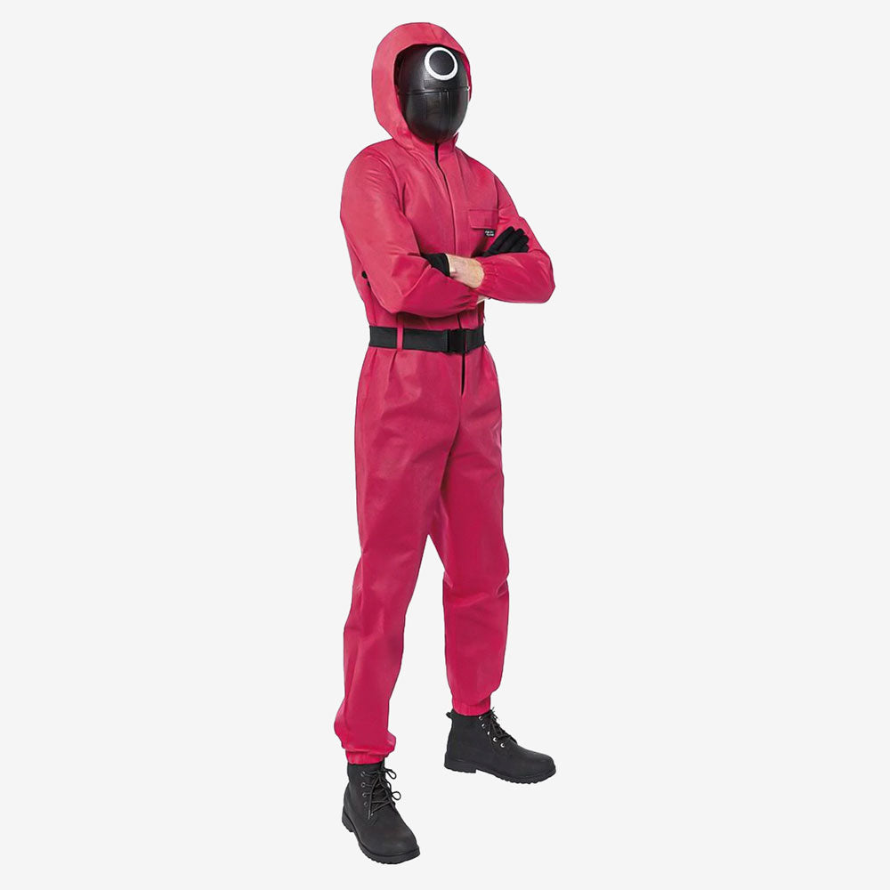 Cette combinaison rouge emblématique attire tous les regards. Son design minimaliste, sa capuche ajustée et ses accessoires fidèles à l’écran vous plongent immédiatement dans l’univers de la série. Que ce soit pour une soirée déguisée, Halloween ou une convention, l’effet est garanti.