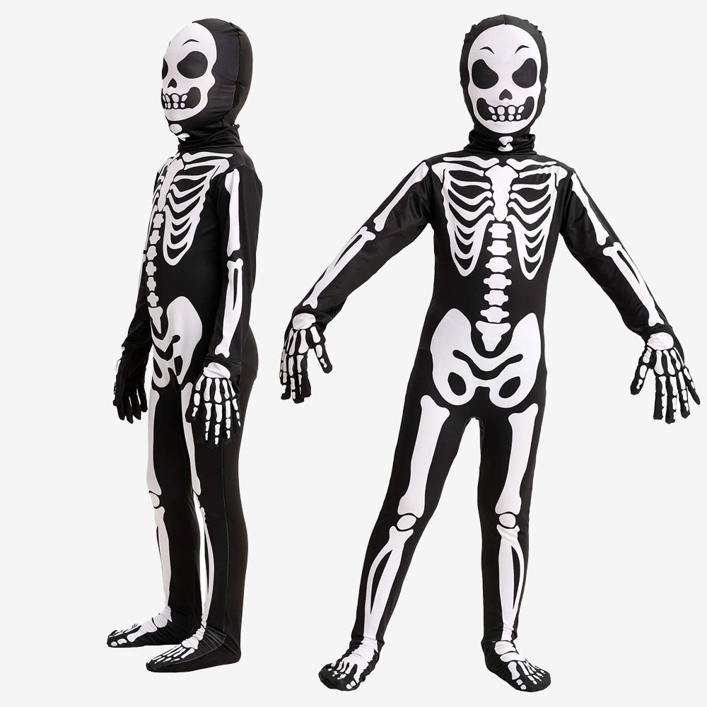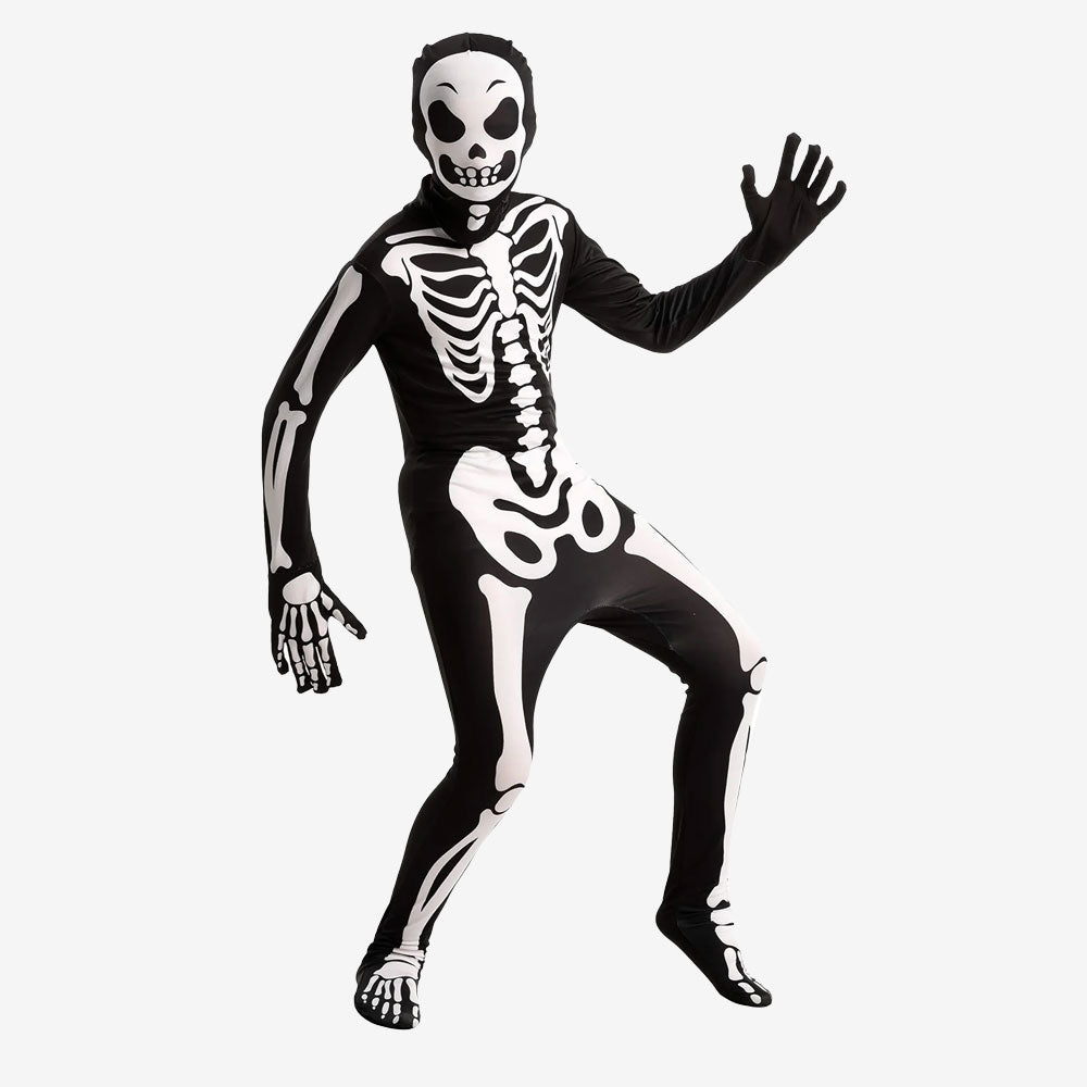 L’imprimé osseux sur fond noir crée un contraste fort qui attire tous les regards. Le rendu est à la fois réaliste et amusant, idéal pour Halloween sans être trop effrayant.
